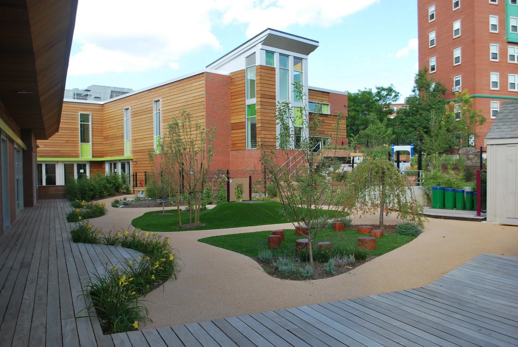 A LEED Gold certified building and natural playground were designed by our firm to support neighborhood residents and serves infants, toddlers, and preschoolers, as well as an extensive STEM-influenced after school program. At 22,400 SF, the center includes community spaces and social work offices, as well as classrooms, a greenhouse, outdoor natural playspaces, and gardens. The outdoor play spaces provide nature-based play opportunities for the children living in a density urban area.