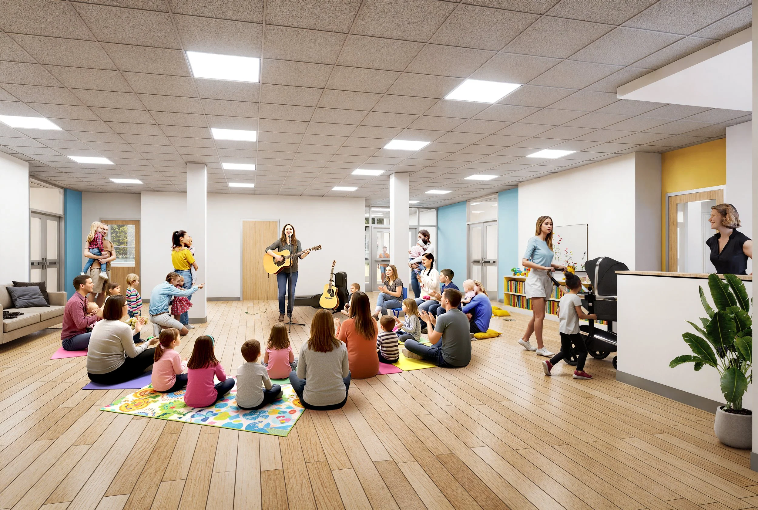 Renovating the ground floor of the lower school to support their early education center and expanding enrollment, relocated from the upper school. The early education center serves infants through pre-k and includes 14 classrooms, early education community room, renovated administrative spaces, two separate play spaces one for toddlers and one for the pre-school/pre-k classrooms.