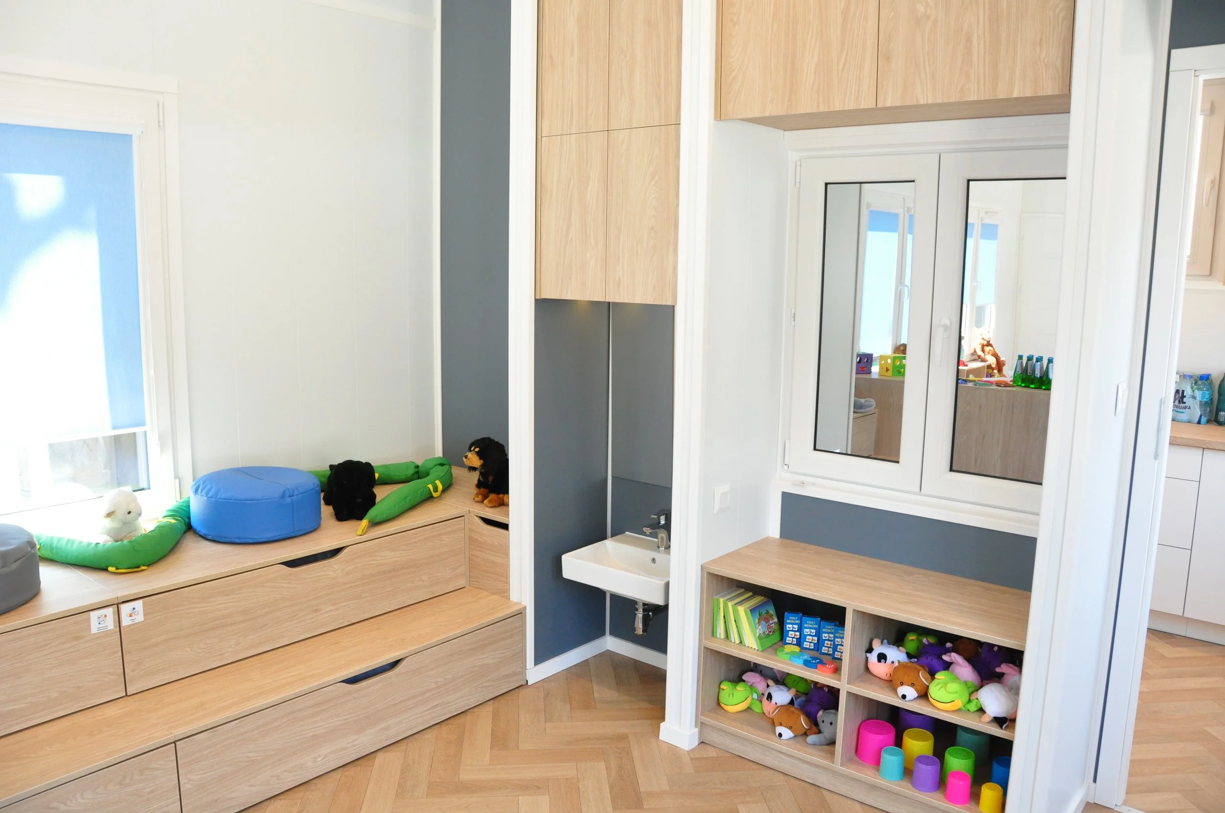 Our partnership with the Comenius Foundation and researchers at the University of Warsaw began with the development of trauma-informed Design Guidelines for SPYNKA centers. These guidelines draw upon Ashley McGraw’s extensive experience designing early childhood environments in the United States and reflect the unique challenges faced by refugee children in crisis.